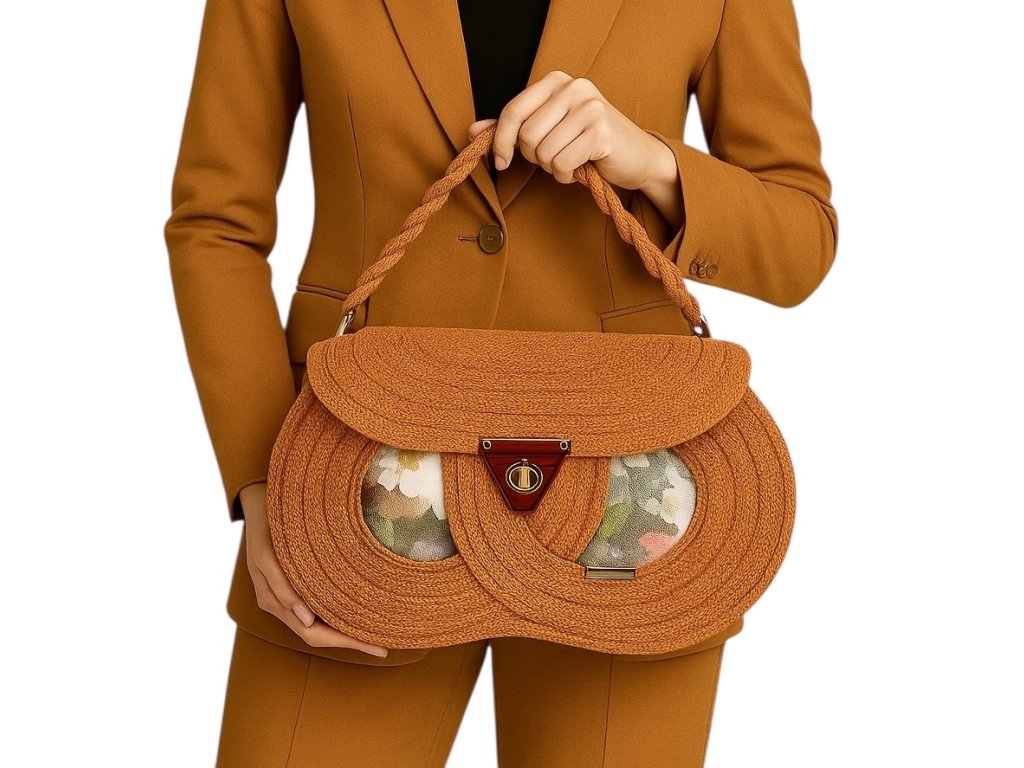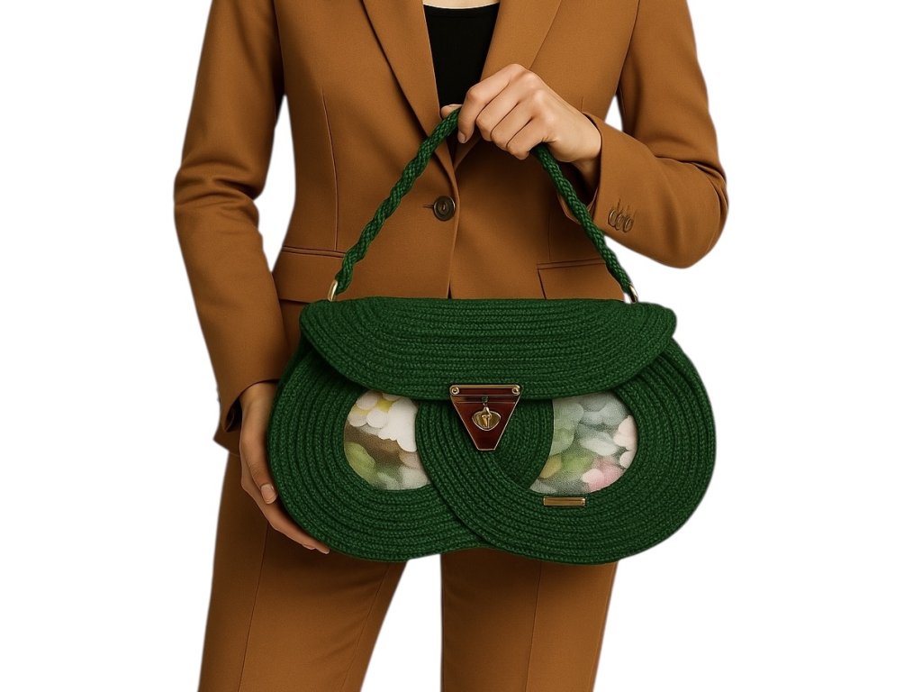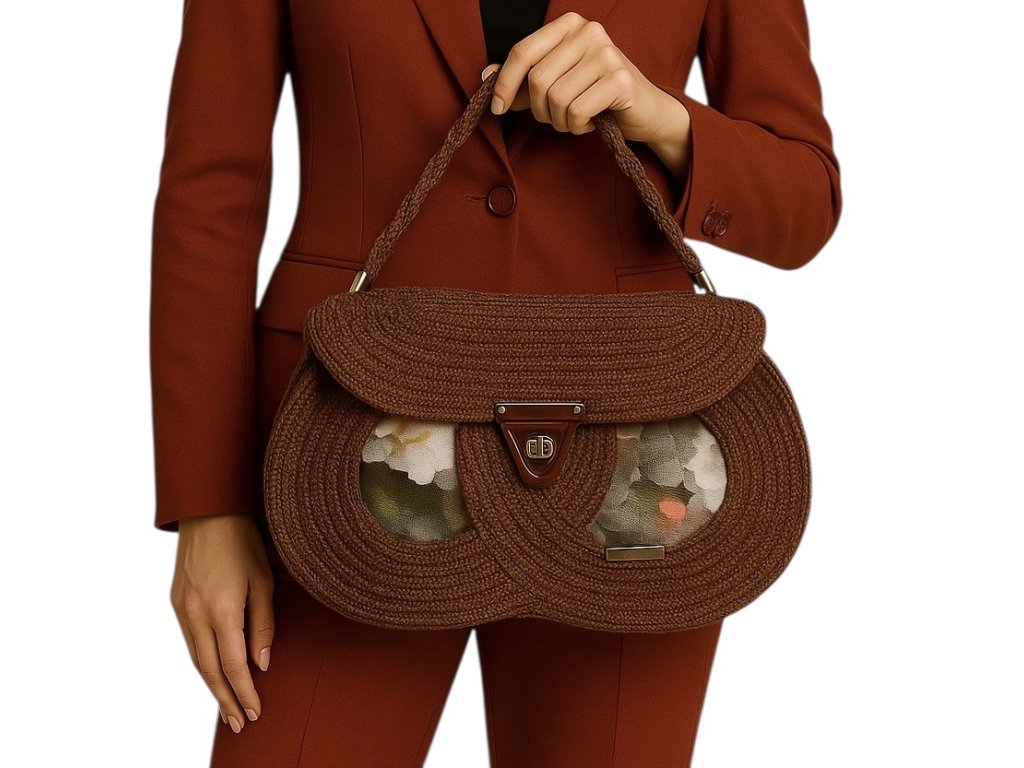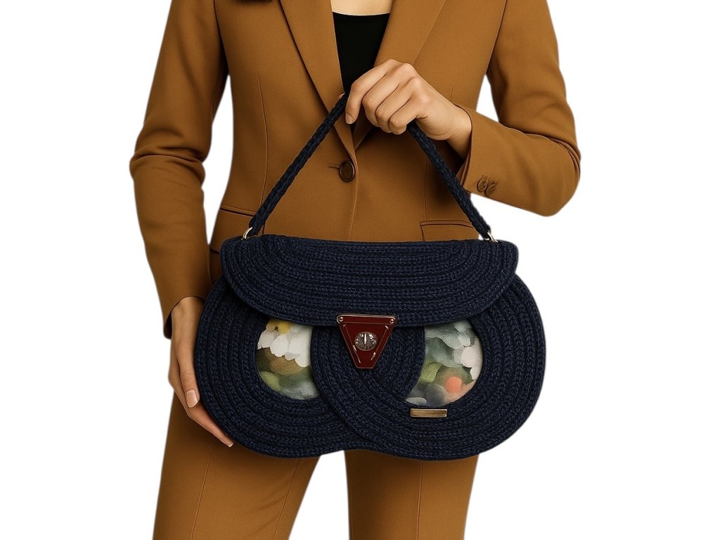 Elegantní kabelka šitá z bavlněné šňůry je spojením přírodní elegance a ženského půvabu. Na první pohled působí minimalisticky a nadčasově s jemným květinovým motivem, která jí dodává lehkost a romantický nádech.