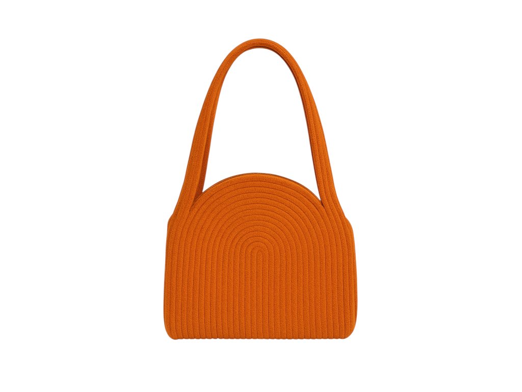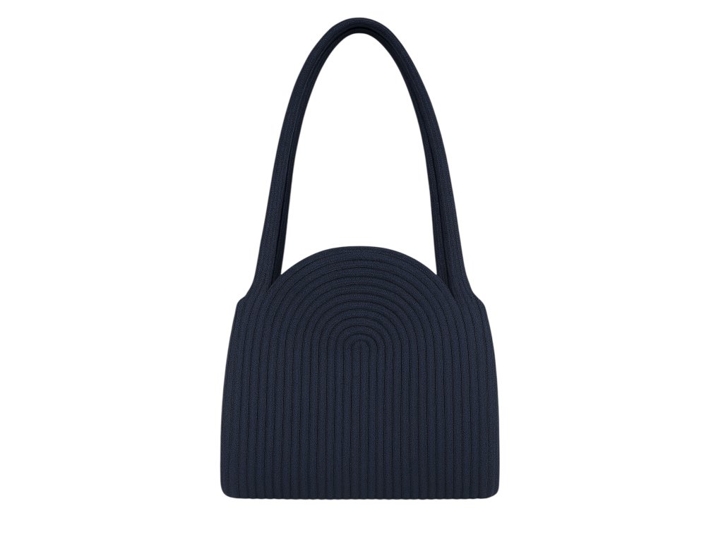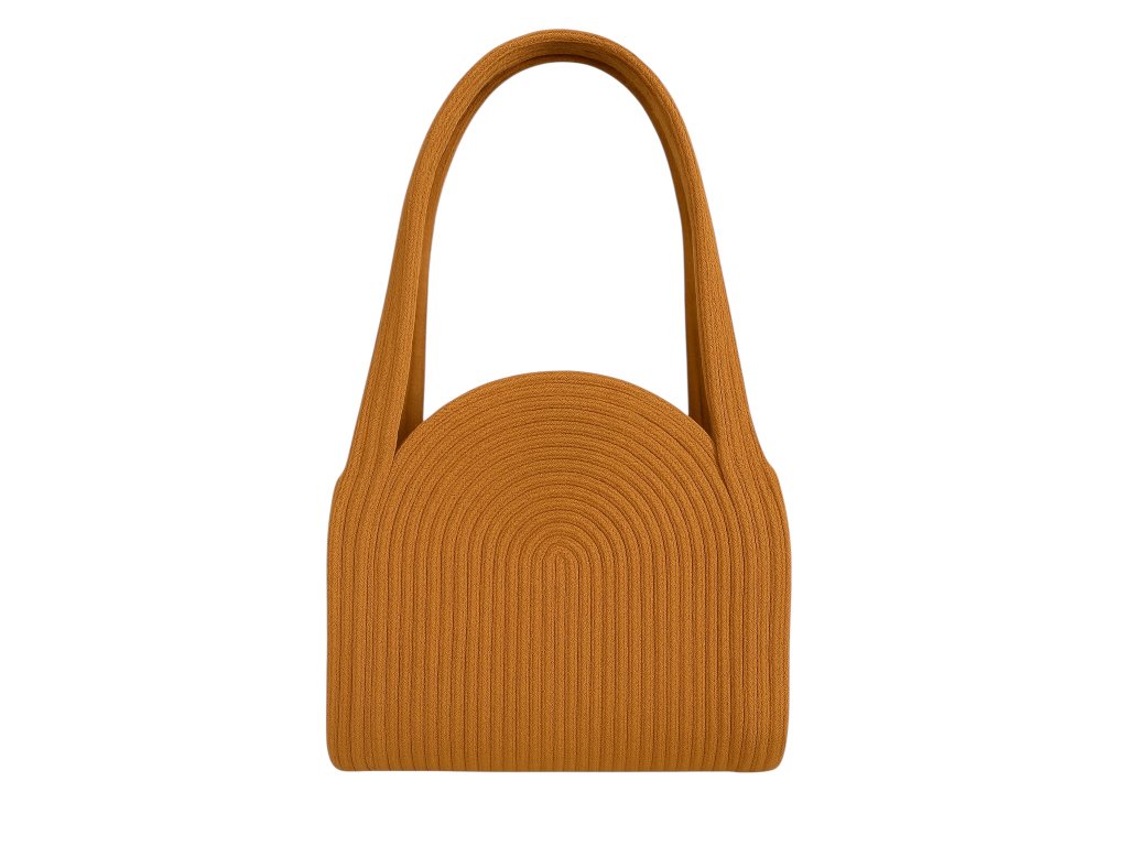 Praktická kabelka ve tvaru oblouku zaujme kombinací barev. Šitá z bavlněné šňůry. Díky dostatečně dlouhým uchům ji pohodlně unosíš přes rameno. Uvnitř najdeš kapsu na zip a praktické zapínání na magnet.