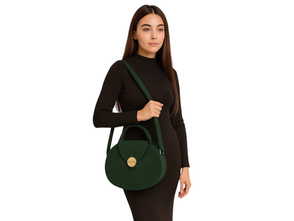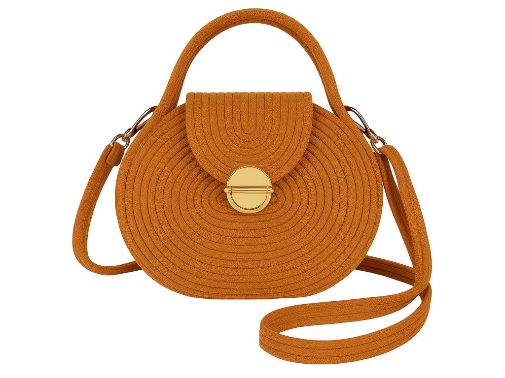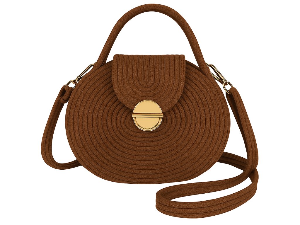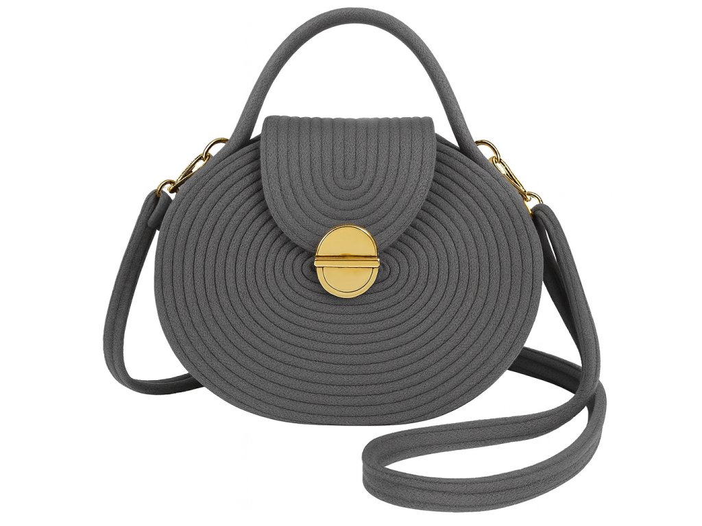Originální elegantní kabelka Jannie z kolekce bavlněné šňůry. Díky ruční práci je každý kus originál - šitá na stroji a sešívaná ručně. Zlaté kovové zapínání dodává kabelce luxusní vzhled, zatím co pevné ucho a odnímatelný popruh umožňují nošení v ruce i přes rameno.