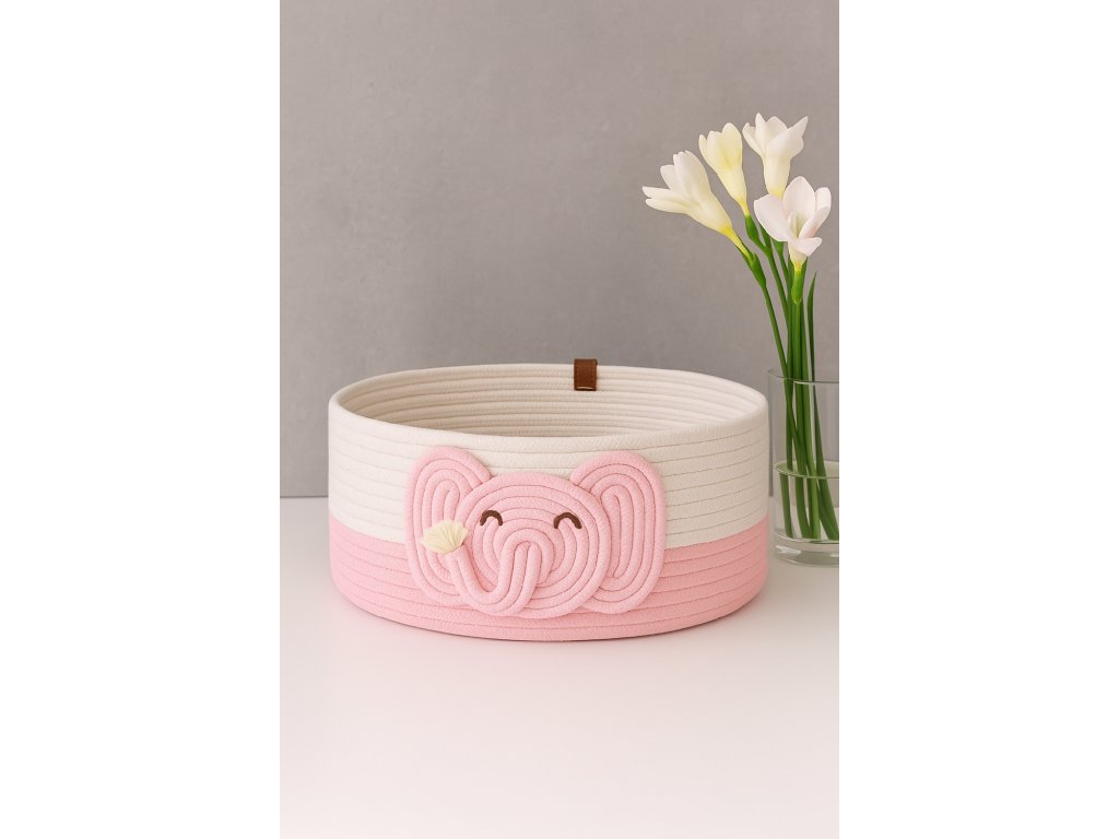 Roztomilý košík sloník přinese do vašeho domova nejen praktické úložné místo, ale i hravý design, který si zamilujete. Vyrobené z pevné bavlněné šňůry v kombinaci barev a doplnění tvářičkou sloníka.