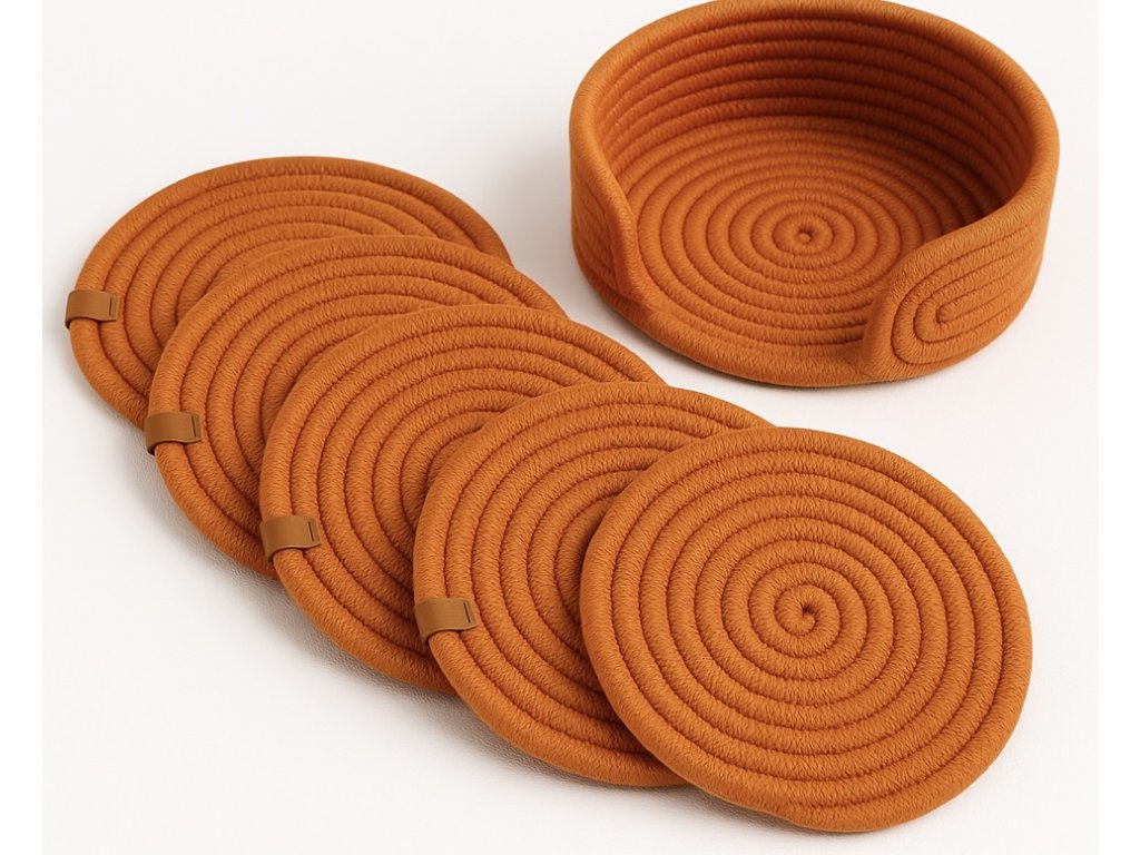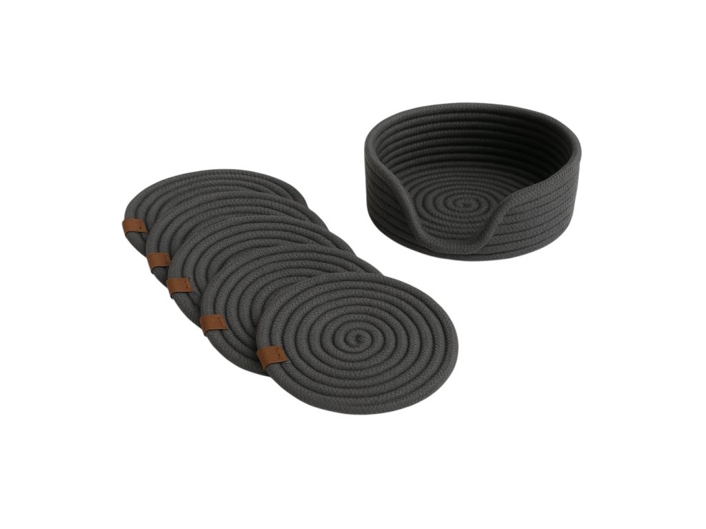 Elegantní sada podtácků 5ks z bavlněné šňůry, jsou pevné, odolné - chrání stůl před skvrnami o poškrábáním a zároveň působí stylové.